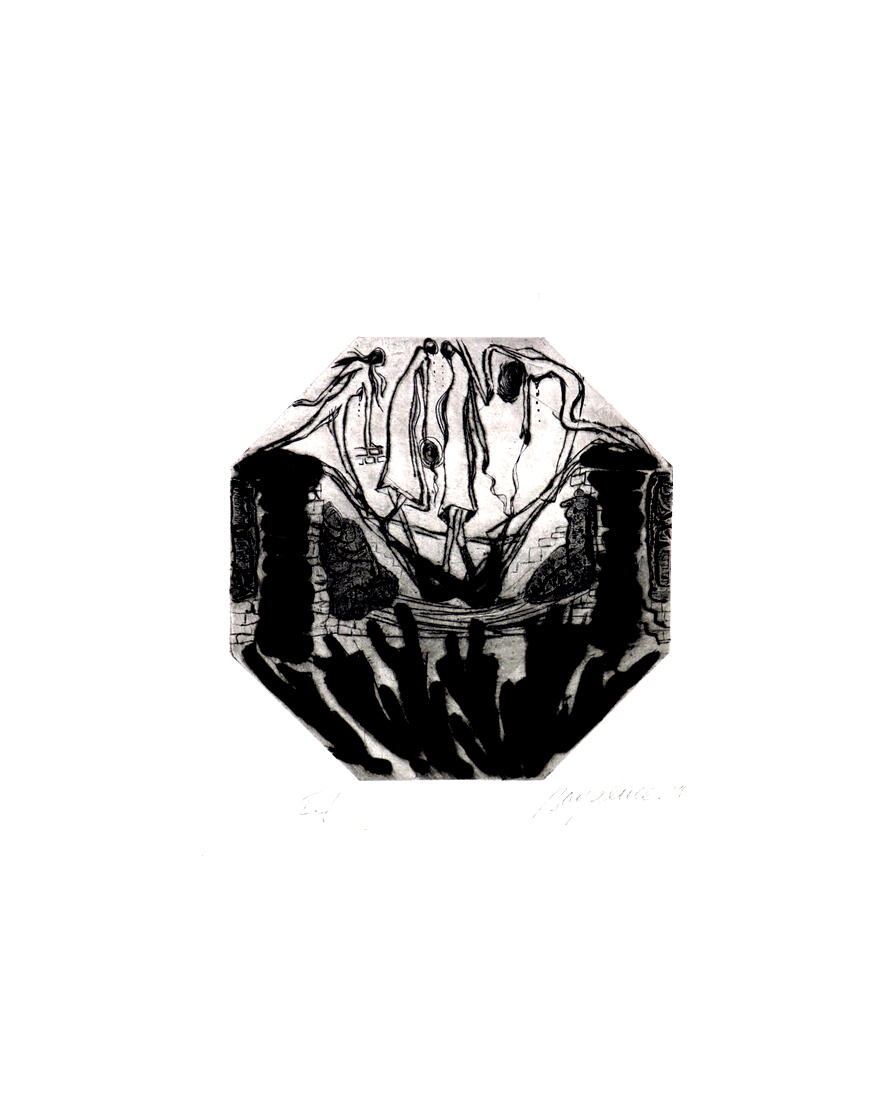 Bayaluce Peintre Graveur, avec le tempérament d'une imagination visuelle extraordinaire, rassemble pour composer son travail, une vaste connaissance des techniques.